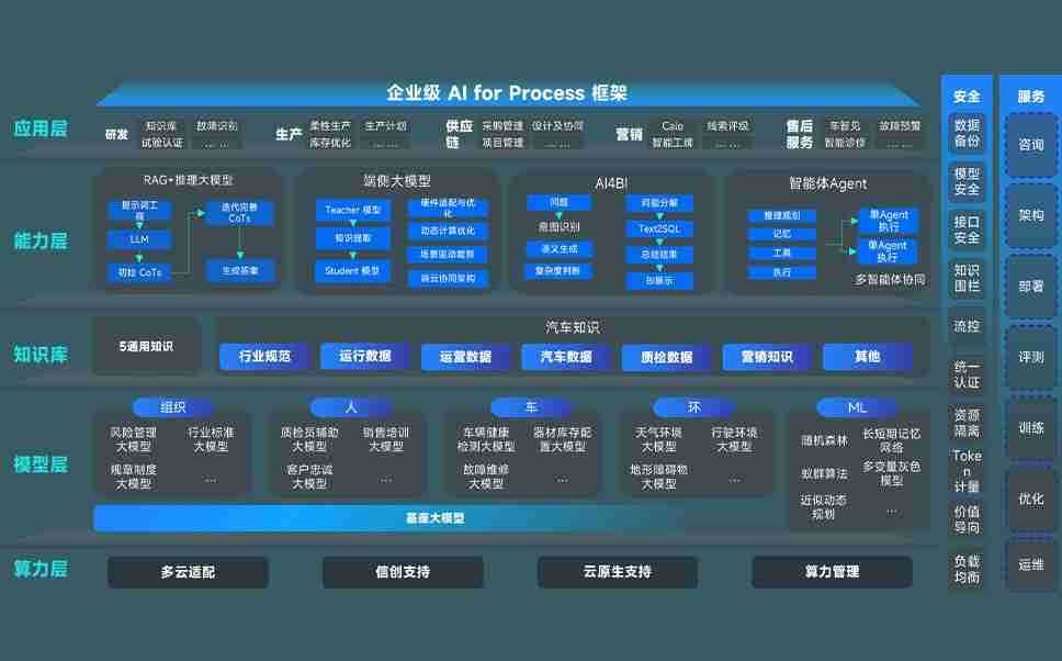 端到端的一站式AI工作空间深度融合了从企业战略规划到日常经营的全流程业务板块,,定向解决车企内部领域多、、部门多、、、、链条长、、、场景碎片化等难题,,,支持车企快速构建以AI为核心的生产力写作体系,,,实现任务执行与AI能力的无缝集成与交互